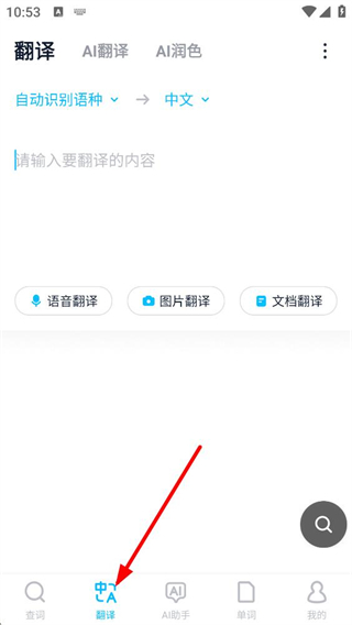 4、翻譯頁面的輸入框中填寫要翻譯的內容,系統會自動識別語種并轉換為中文,也能切換目標語種,助力用戶高效完成多形式的翻譯任務。