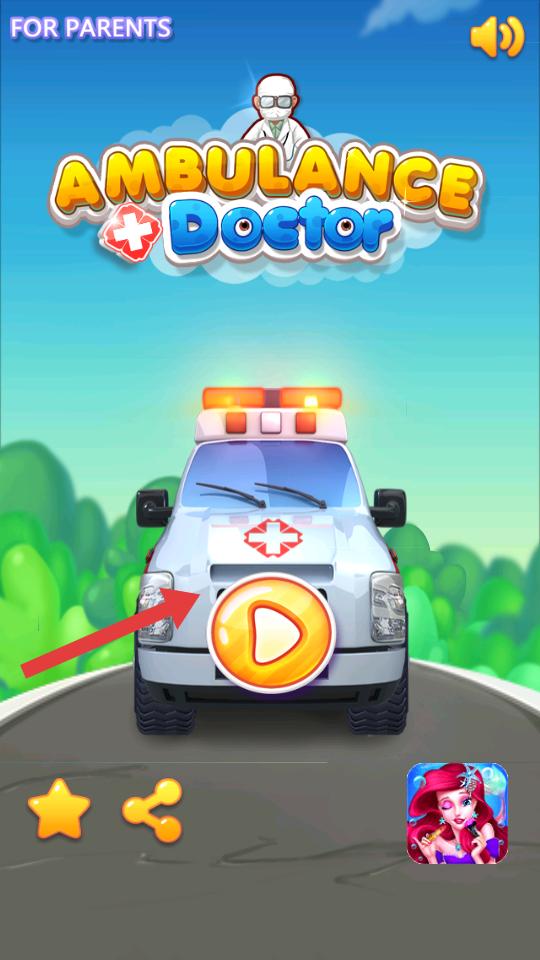 1、游戲初始界面有救護車和開始按鈕,點擊開始,進入后續選擇環節,開啟救護車醫生的游戲體驗。