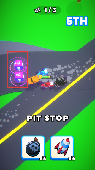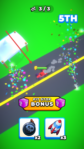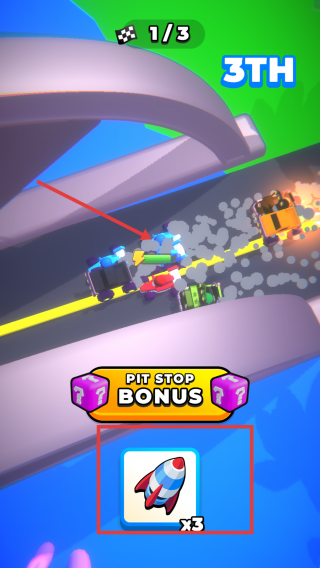 2、在比賽過程中當出現PIT STOP BONUS獎勵提示時,點擊下方的道具圖標使用道具加速,超越前方的對手。
