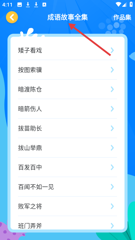 1、成語故事全集界面,匯聚矮子看戲等大量成語,以列表形式呈現,方便用戶查找開啟成語知識探索之旅。