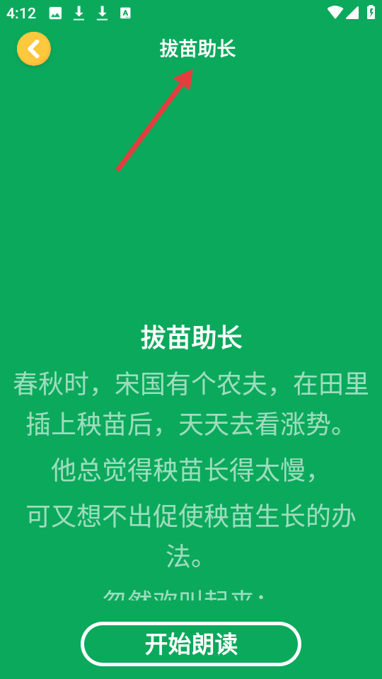 2、拔苗助長故事頁詳細敘述宋國農夫的故事,傳達寓意,開始朗讀功能助力用戶加深理解與記憶。