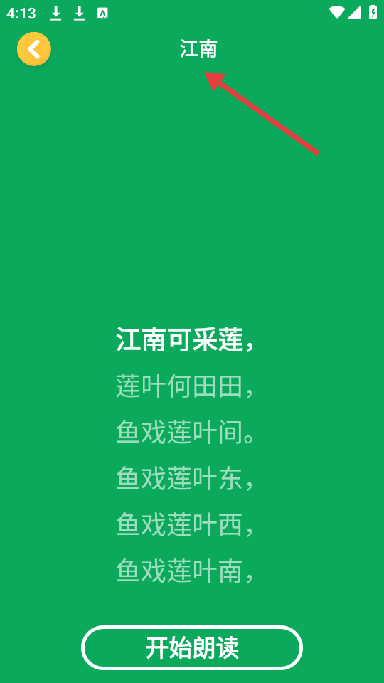 4、古詩江南展示頁呈現朗朗上口的詩句,搭配開始朗讀按鈕,幫助少兒更好地學習和誦讀古詩。