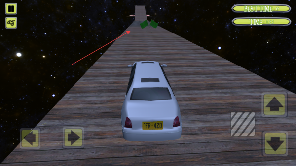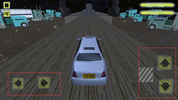 2、進入游戲后通過屏幕左下角的左右方向按鈕控制轎車轉向,右下角的上下按鈕控制轎車的加速和減速。