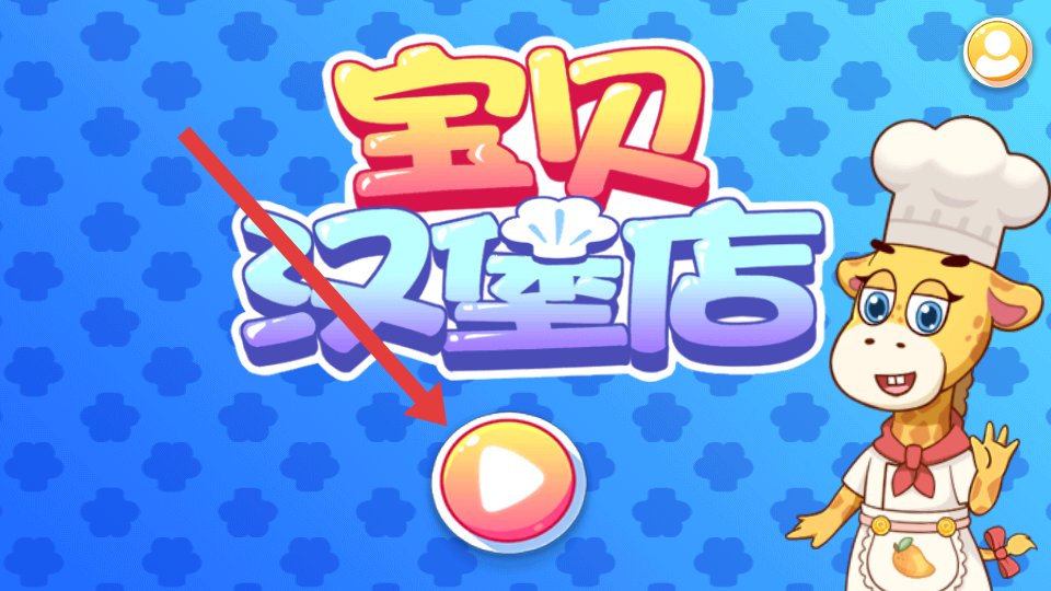 1、進入寶貝漢堡店游戲界面,映入眼簾的是可愛長頸鹿廚師和醒目的播放按鈕,點擊這個帶有播放標識的圓形按鈕。