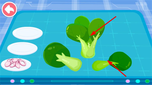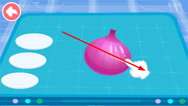 3、切換到處理食材的場景,操作工具對洋蔥進行處理,將其加工成對應形狀,為后續烹飪準備配料。