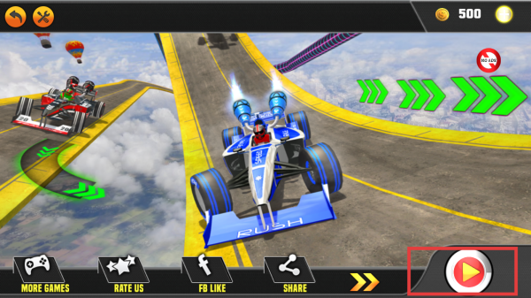1、玩家下載游戲在游戲主界面,點擊右下角的播放按鈕,進入游戲,開啟蹦蹦車空中特技之旅。