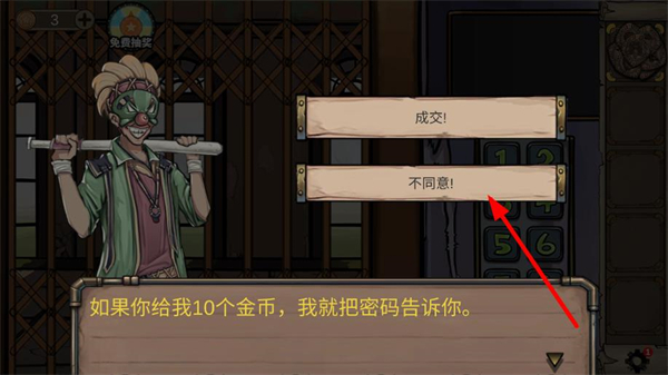 3、提出給10個金幣就告訴你密碼,你可選擇成交或不同意,不同選擇影響后續發展。