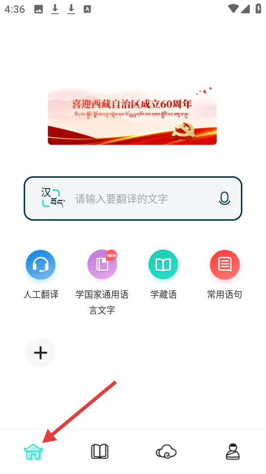 1、首頁呈現喜迎西藏自治區成立60周年標識,具文字翻譯功能,設有學語言、人工翻譯等板塊,便捷實用。