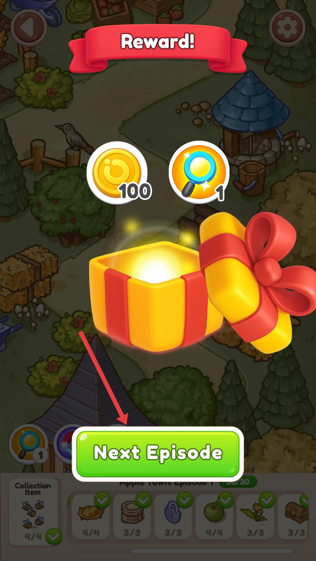 4、當完成收集任務后,會獲得獎勵,此時點擊Next Episode按鈕,就能進入下一個關卡繼續游戲。