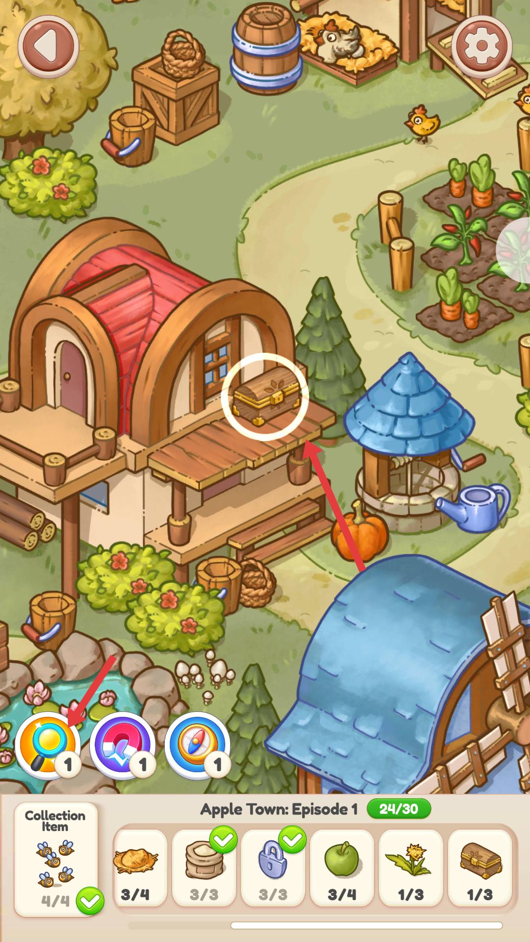 3、探索過程中,還會遇到寶箱,點擊寶箱可開啟,同時也能使用放大鏡等道具,幫助更高效地尋找物品。