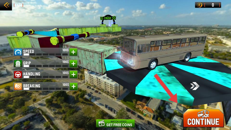 2、在巴士屬性界面,能看到速度,抓地力等屬性,點擊continue,進入巴士駕駛操作環節。