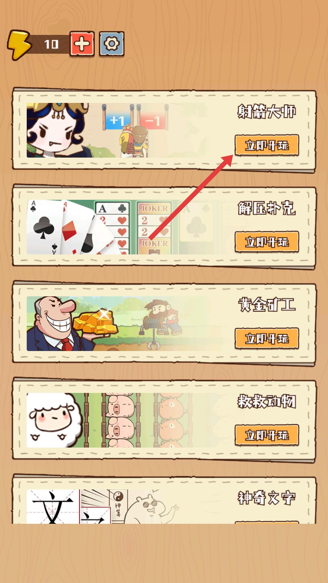 1、玩家下載游戲登入游戲頁面后,進入游戲選擇界面,點擊立即開玩按鈕,開啟射箭冒險之旅。