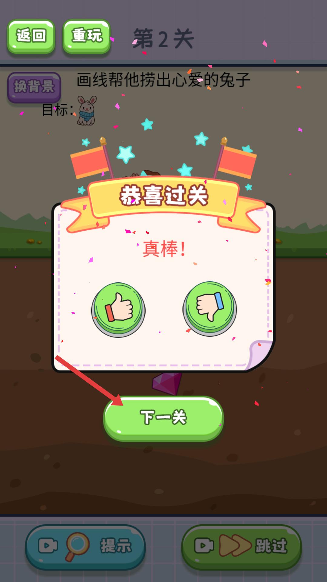 3、玩家成功通關第2關后,點擊下一關按鈕,進入第3關繼續游戲。