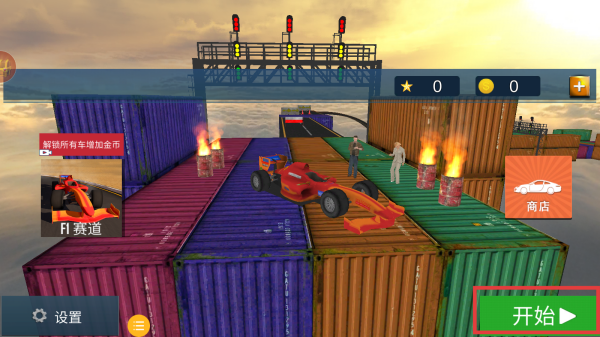 1、玩家下載游戲之后然后點擊進入,在游戲主界面,點擊開始按鈕進入豪車競速挑戰的任務選擇環節。