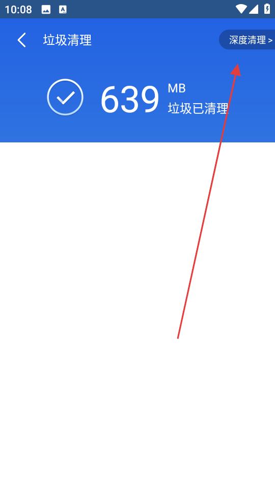 3、垃圾清理完成后,頁面顯示已清理639MB垃圾,點擊深度清理選項,進一步掃描手機深層垃圾,重復清理流程釋放更多空間。