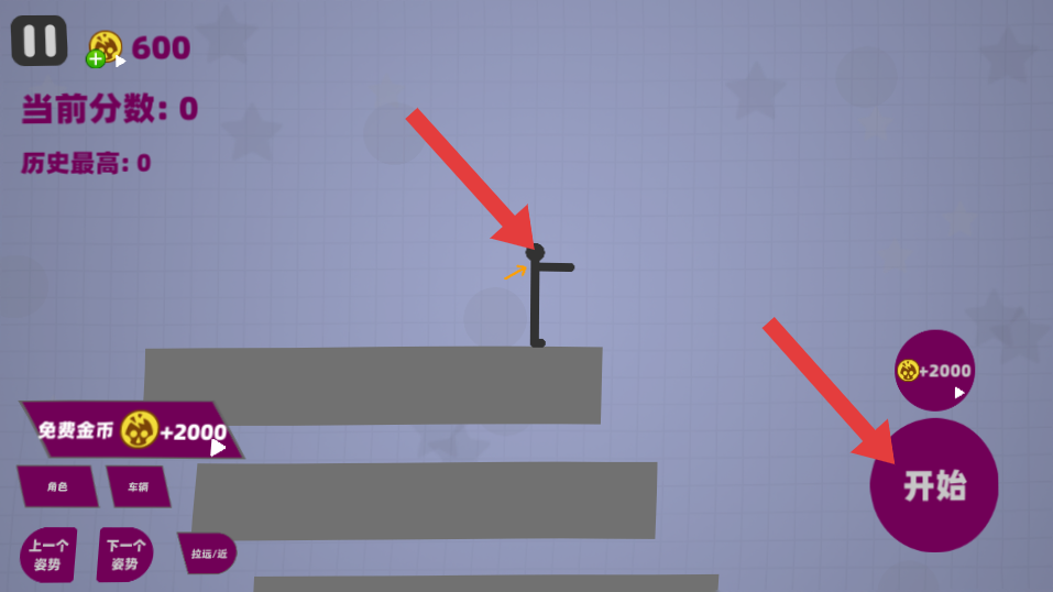 2、進入所選地圖后,點擊開始,操控火柴人從平臺墜落,在墜落過程中嘗試各種動作。
