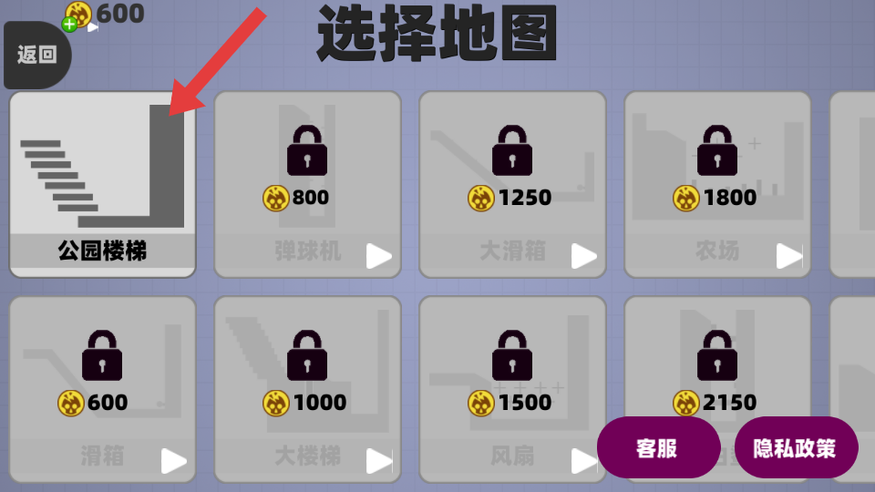 1、進入游戲,選擇地圖,比如公園樓梯,開啟火柴人墜落挑戰,準備體驗刺激的墜落過程。