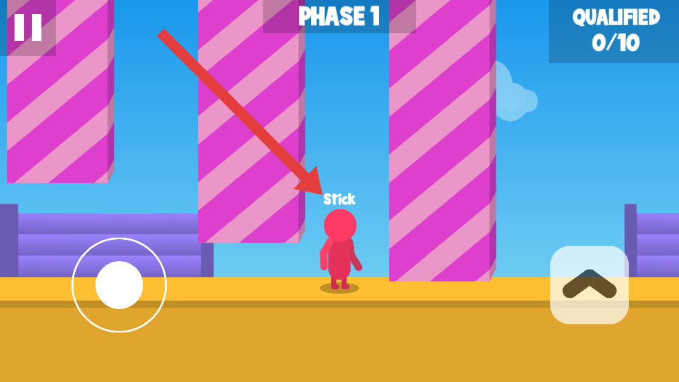 3、比賽中引導粉色火柴人躲避障礙,穿過彩色通道,努力沖向終點,爭取獲得晉級資格。