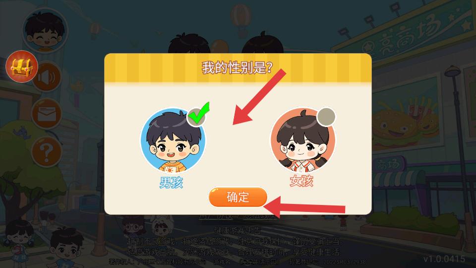 1、進入游戲先選擇性別,有男孩和女孩兩個選項,選好后點擊確定,即可進入后續游戲環節。