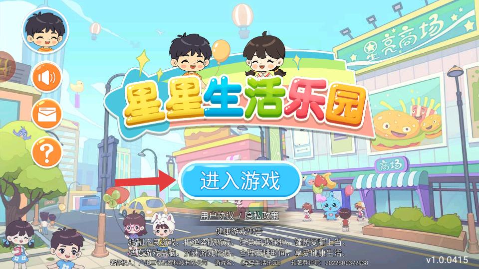 2、然后看到星星生活樂園標題和進入游戲按鈕,點擊該按鈕,就能進入場景選擇等游戲界面。
