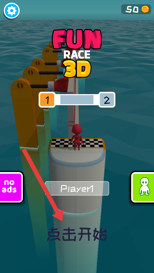 1、進入游戲初始界面,紅色小人準備起跑,點擊【點擊開始】按鈕,開啟這場水上賽道的趣味競賽。