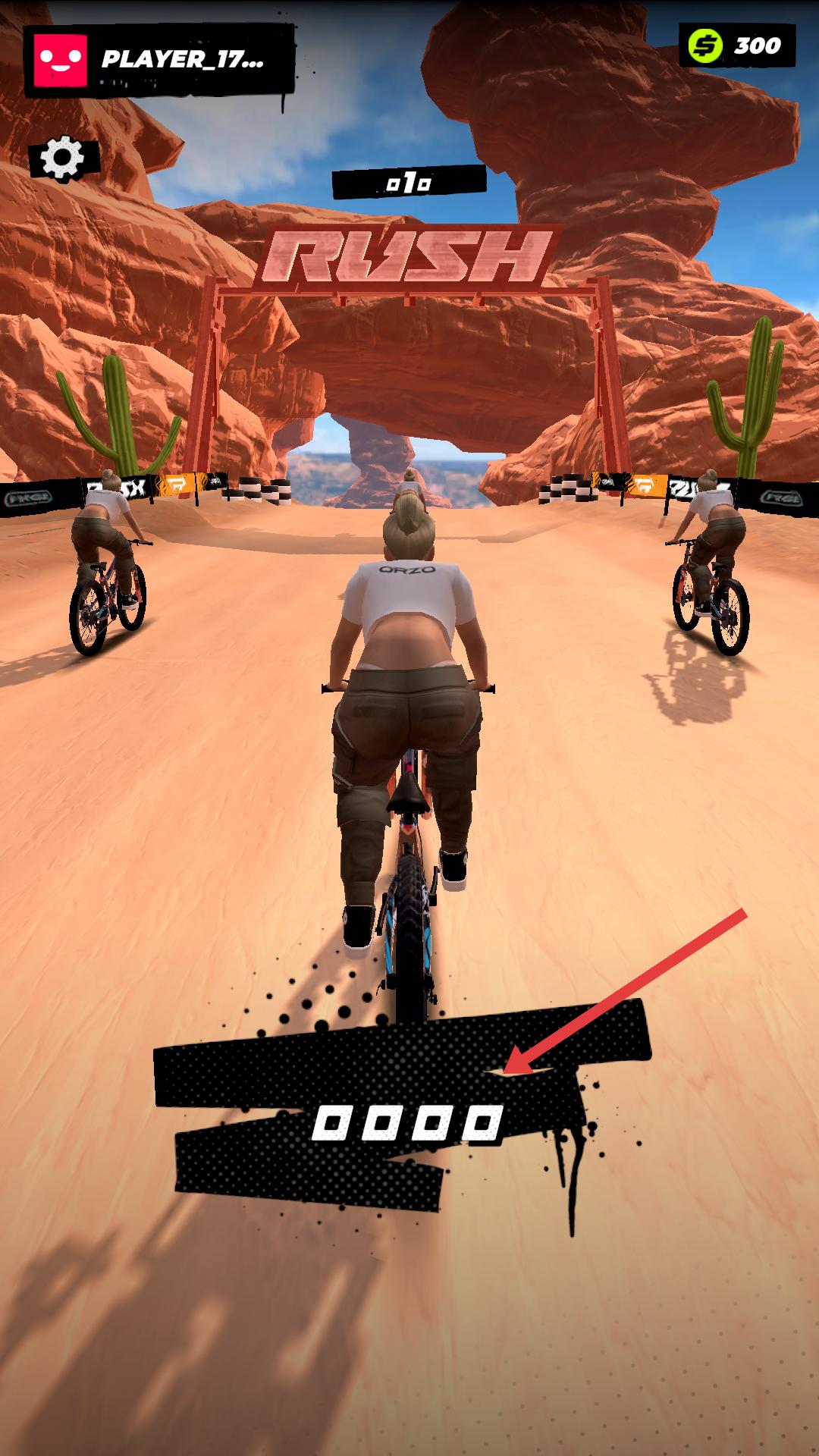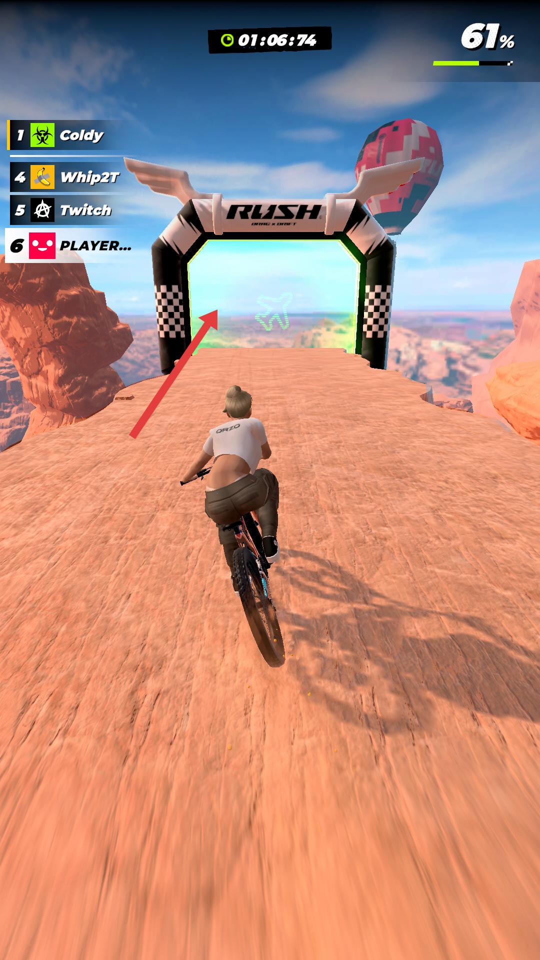 3、接近終點時,瞄準帶有RUSH標識的拱門,全力沖刺通過,這是完成比賽的關鍵步驟,需保持騎行的穩定性和速度。