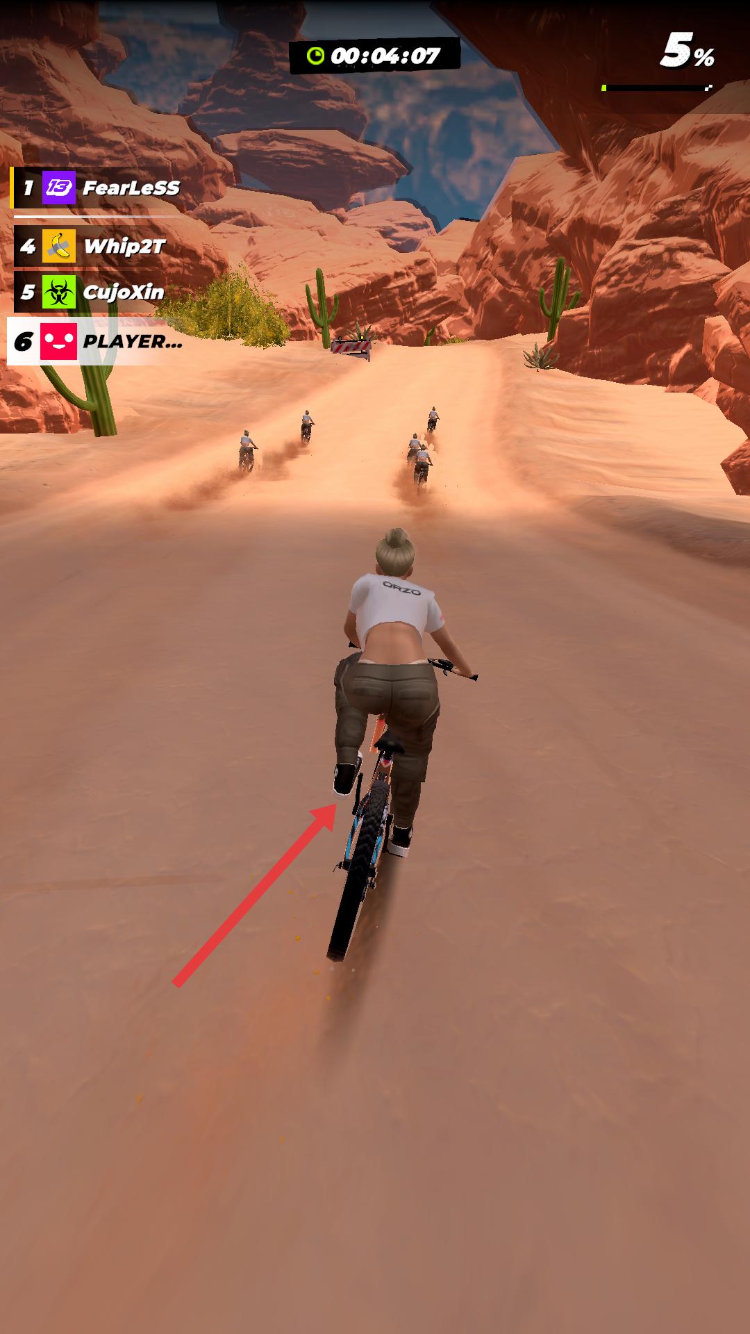 2、騎行過程中,通過操作讓角色保持良好節奏,奮力追趕前方選手,利用賽道地形,爭取提升排名,注意時間和進度條變化。