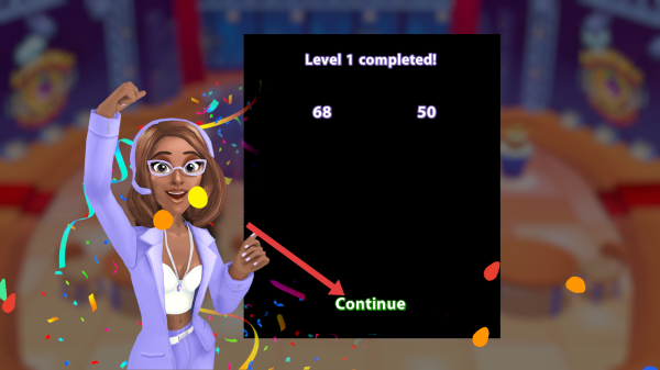 4、成功完成第一關后,界面會顯示第一關勝利,點擊繼續按鈕,可繼續后續游戲關卡。