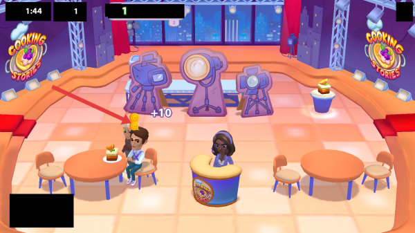 2、將角色引導至餐桌旁,為顧客提供餐食,完成后能獲得金幣獎勵,積累游戲內的資源。