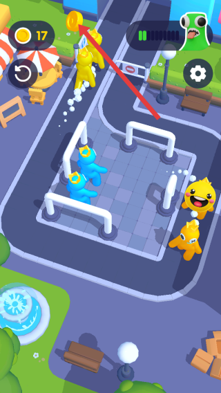 3、讓彩色小人通過圍欄等區域,過程中會獲得金幣獎勵,不斷積累游戲內的金幣資源。