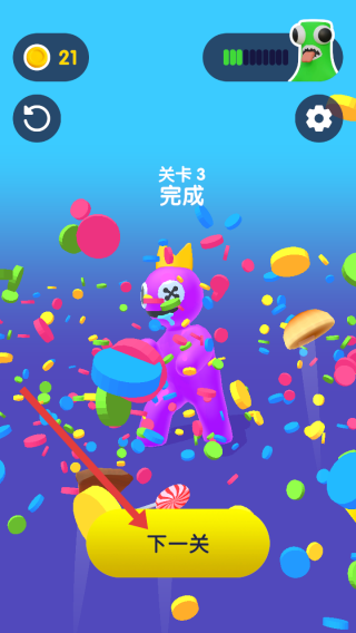 4、成功完成關卡3后,界面顯示關卡3完成點擊下一關按鈕,即可進入下一個游戲關卡。