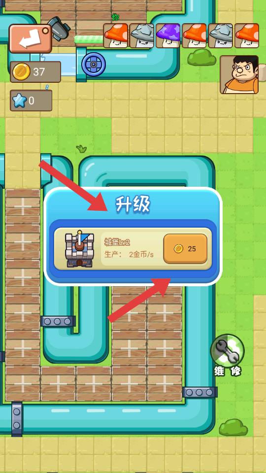 4、游戲中能獲取金幣,當有足夠金幣時,可對城堡等進行升級,提升生產金幣的速度。