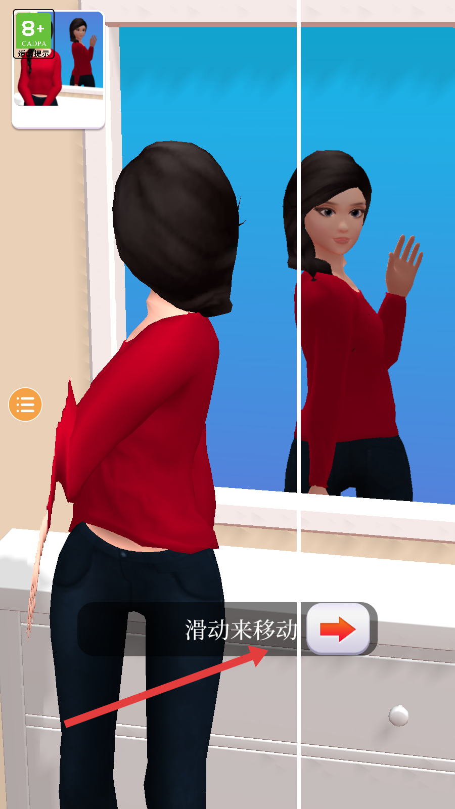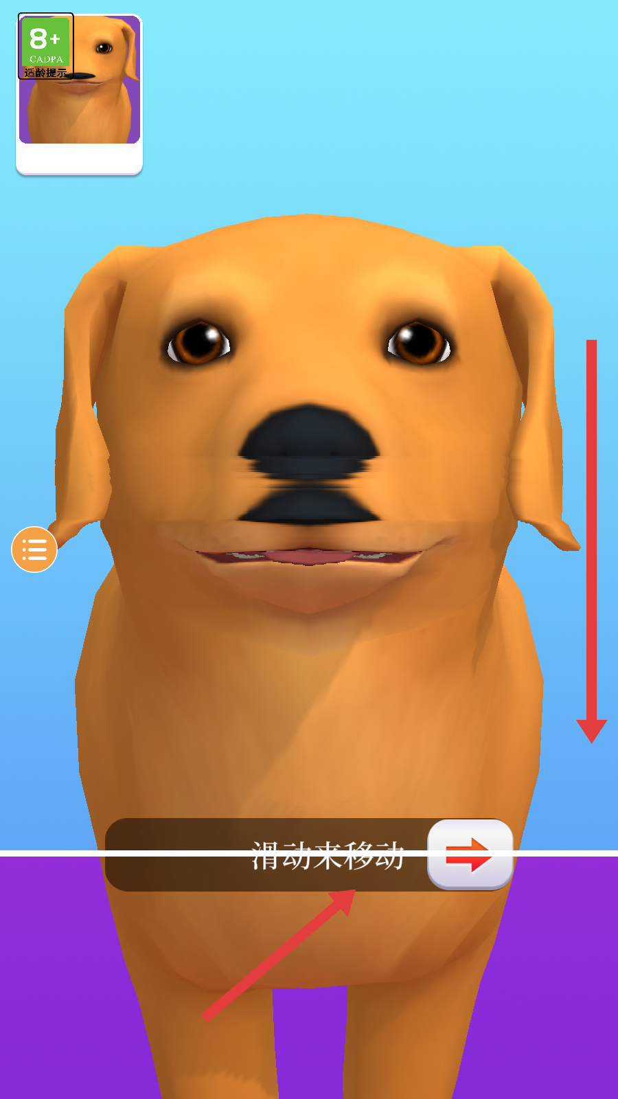 1、進入游戲,按照提示滑動屏幕,移動道具,對人物形象進行有意思的變形,讓人物外觀更不一樣。