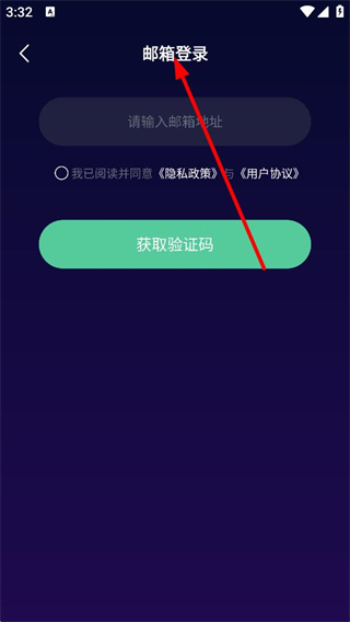 4、選擇郵箱登錄后,需對應輸入框填寫郵箱地址,勾選同意相關協議后點擊獲取驗證碼,后續輸入驗證碼即可完成郵箱賬號的登錄流程。