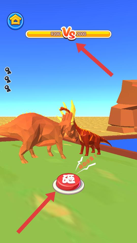 3、遇到其他恐龍時,會進入對戰環節,點擊砸按鈕,和對手比拼,爭取獲得勝利。