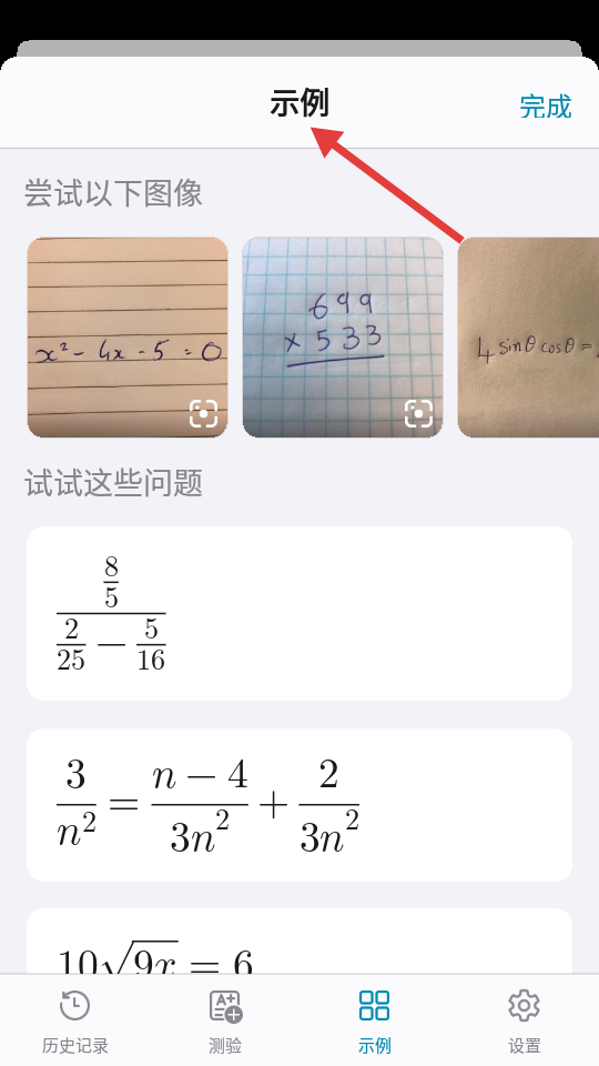 2、示例頁面有手寫及打印數學題圖像,如方程求解等題目,為解題提供參考范例激發解題思路。