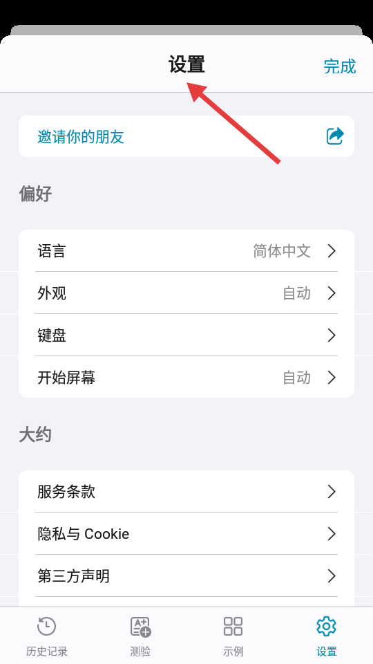 3、設置頁面可邀朋友,能對語言外觀等偏好進行調整,還能查看服務條款等信息滿足個性化需求。