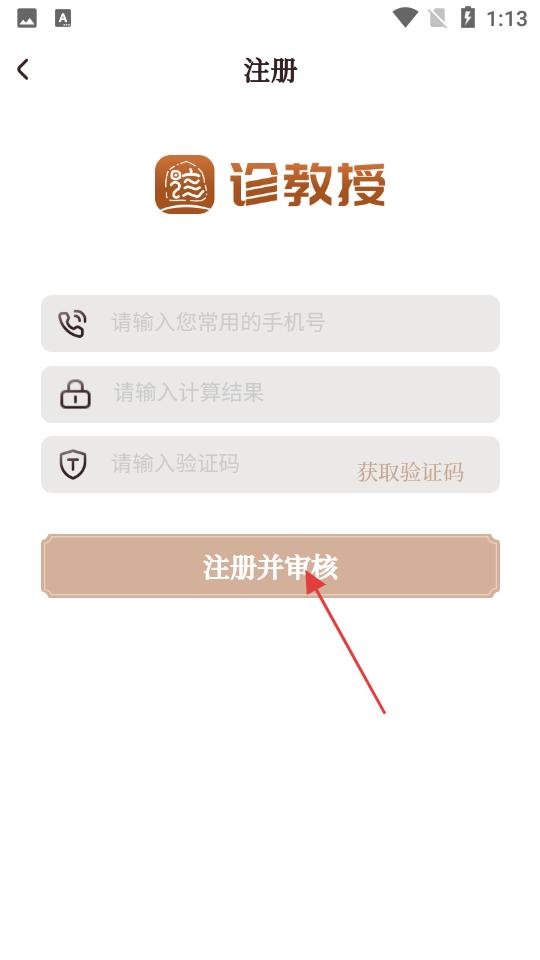 3、在APP的新用戶注冊界面,依次填寫常用手機號,輸入計算結果完成驗證,然獲取和輸入驗證碼,點擊注冊并審核按鈕完成注冊操作,等待審核通過后即可注冊完成。