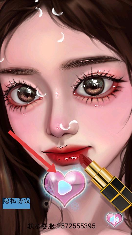 1、進入游戲,點擊愛心形狀的開始按鈕,開啟美妝護膚之旅,準備為角色打造精致妝容和肌膚。