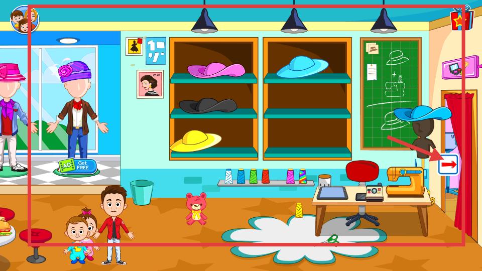 2、進入展示著各式帽子、有縫紉機等工具的房間里,點擊右側帶箭頭的圖標,能前往其他相關功能區域,探索更多時裝制作或搭配元素。