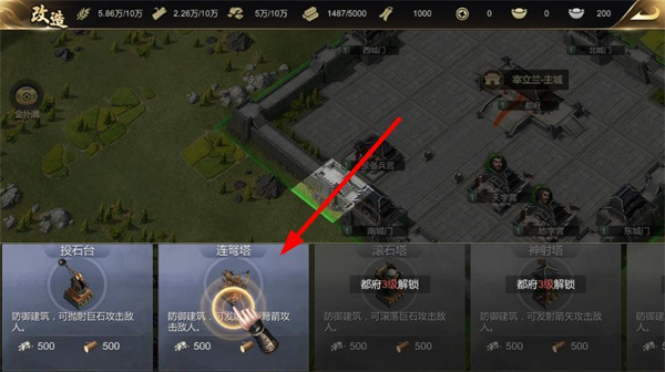 4、建造防御建筑如連弩塔,提升主城防御能力,抵御敵方進攻,保障主城安全,為勢力發展提供穩定環境。
