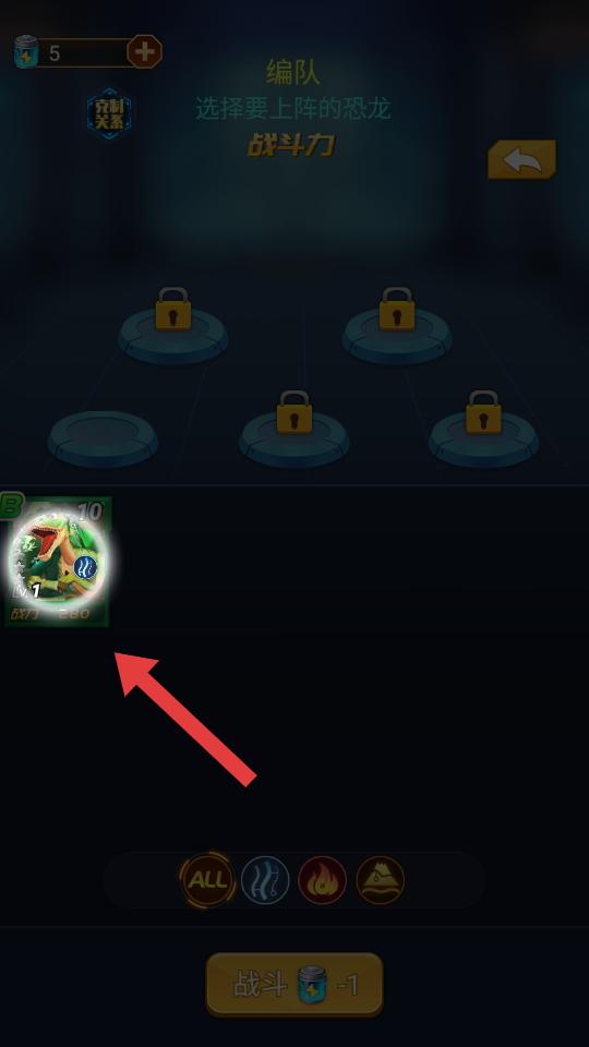 2、在編隊界面,玩家根據戰斗力選擇要上陣的恐龍,挑選合適的恐龍,為戰斗做好準備。