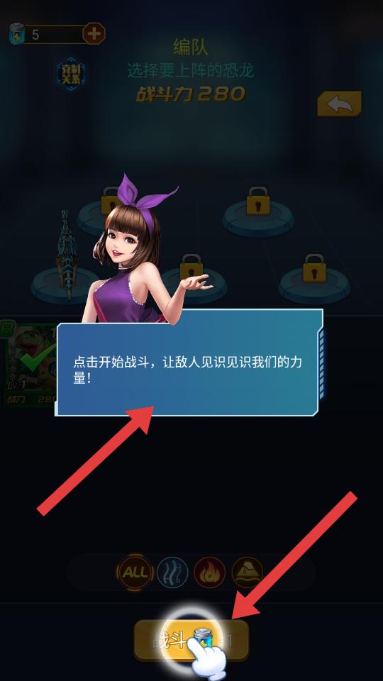 3、選好恐龍后,再次點擊戰斗,讓敵人見識所選恐龍的力量,正式進入戰斗環節。