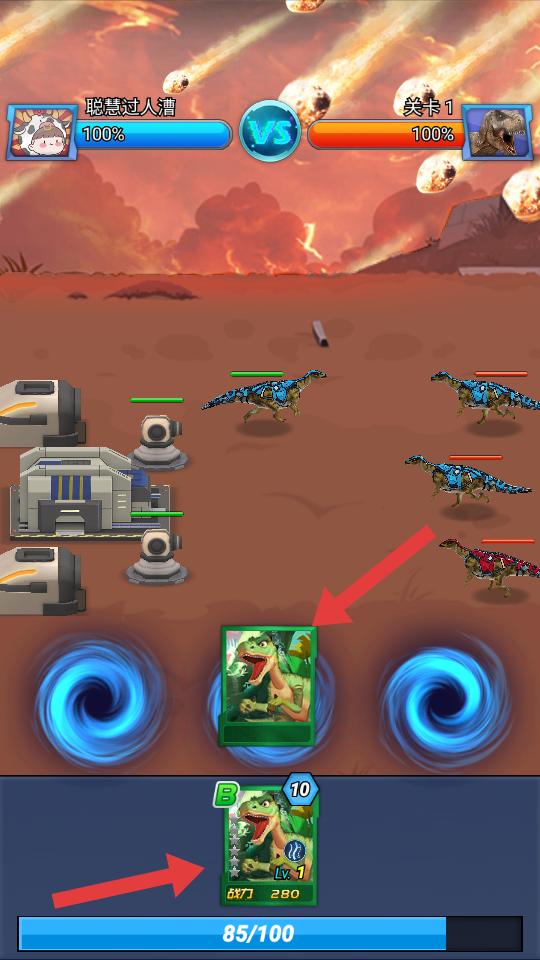 4、戰斗時,會出現對戰場景,可使用恐龍卡牌,操控恐龍與敵人恐龍展開戰斗,爭取勝利。