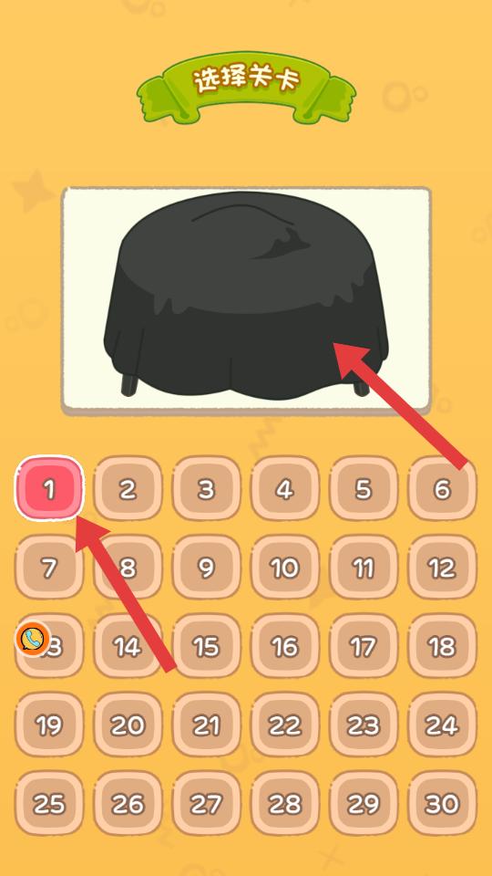 2、進入選擇關卡界面,可挑選不同關卡,比如點擊數字1對應的關卡,進入該關卡進行游戲。