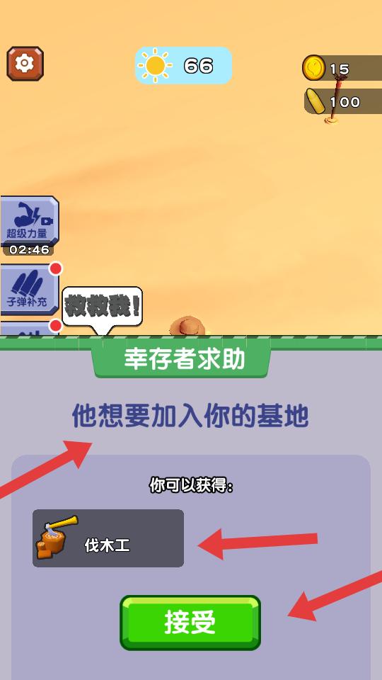 4、再次遇到幸存者求助時,接受后可獲得伐木工等幫手,有了幫手能更高效地收集資源,讓基地發展得更好。