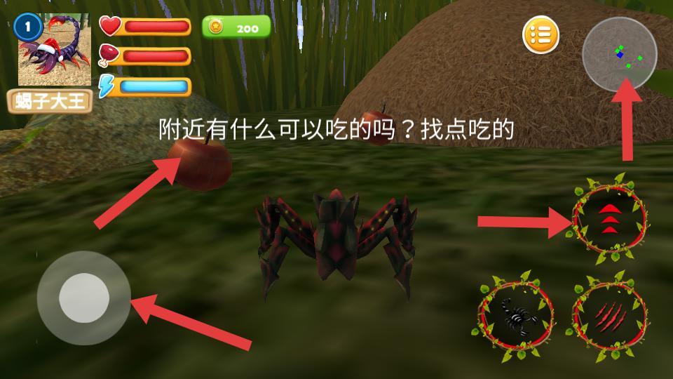 4、進入任務后,操控昆蟲移動,尋找食物,界面有操作按鈕,可控制昆蟲的行動方向和動作,滿足生存需求。