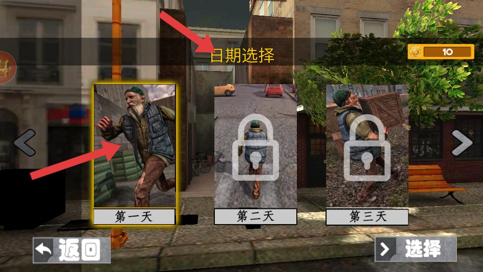 1、進入游戲,點擊開始玩,進入日期選擇界面,可選擇不同天數,挑選想體驗的天數,開啟流浪漢的生活模擬。