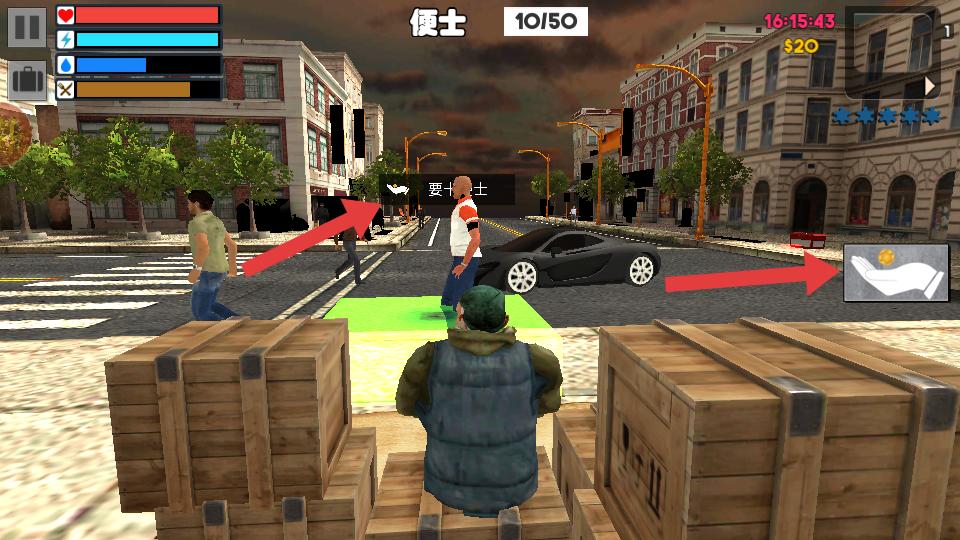4、遇到路人時,可進行互動,比如伸手等動作,嘗試獲取幫助或資源,體驗流浪漢在城市里求生存的過程。