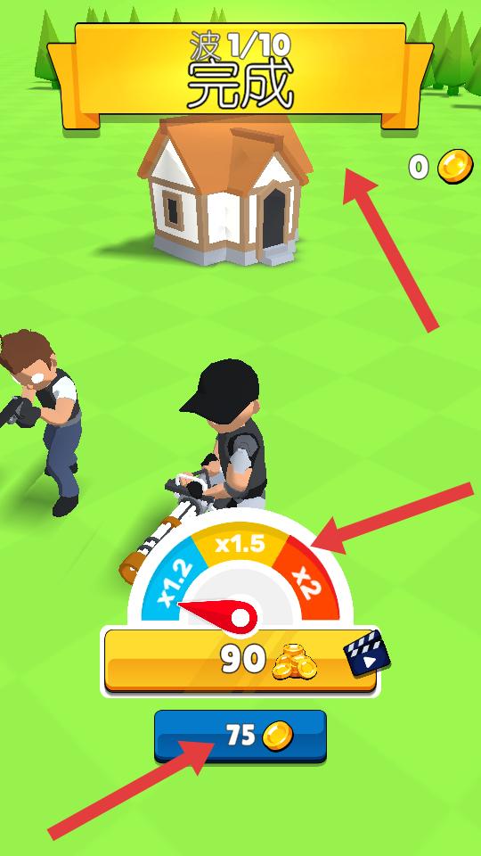 3、成功完成一波敵人進攻后,會顯示波數完成,還能獲得金幣獎勵,可選擇領取金幣,積累資源。